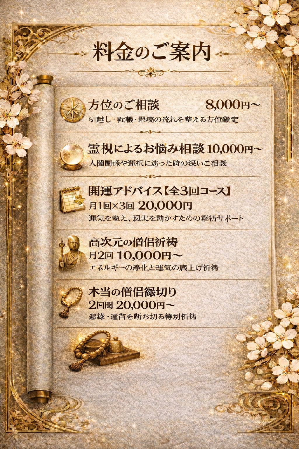 上記のLINEを登録し、悩みを記入して下さい。 全てLINEでのやり取りになります。 LINEされてない方は、お問い合わせから 直接メールでのやり取りも可能です。 どんなことでも、お気軽にご相談ください(^^♪ ●転職、引越し、結婚 ●子宝、お子様の悩み(不妊・育児) ●恋人・復縁・出会い 初めてな方でも、うまく話せなくても大丈夫です。 運命には法則がありますその法則を使い皆様の幸せな未来の導きへアドバイス含め、お伝えしています